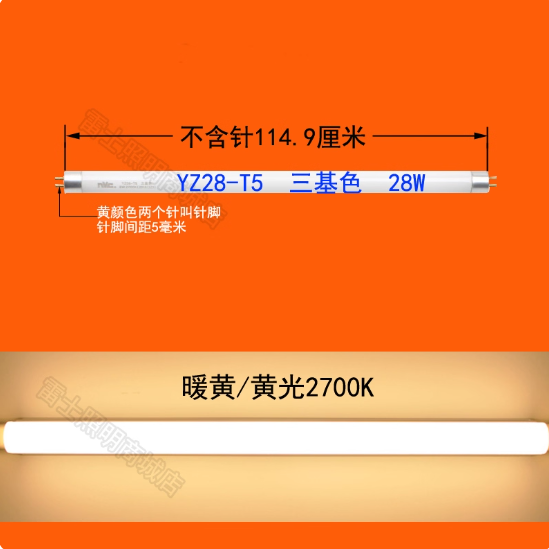 Leishi Lighting old-fashioned warm yellow T5 three color fluorescent tube YZ08W11W14W18W21W24