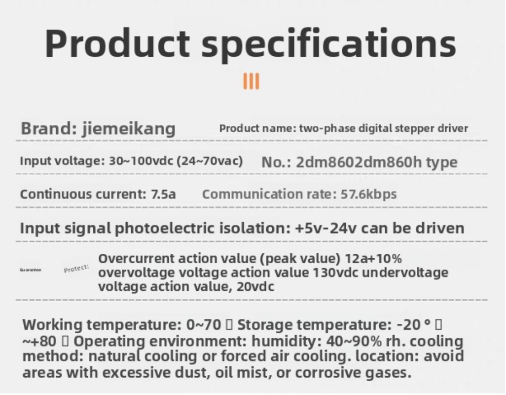 2DM860 is a newly launched digital stepper motor driver by Jiemeikang Company, which adopts new 32-bit DSP control technology. Users can set 25600