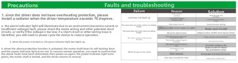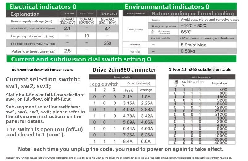 4: When stationary, the current automatically halves, and the pulse response frequency can reach up to 250KHZ